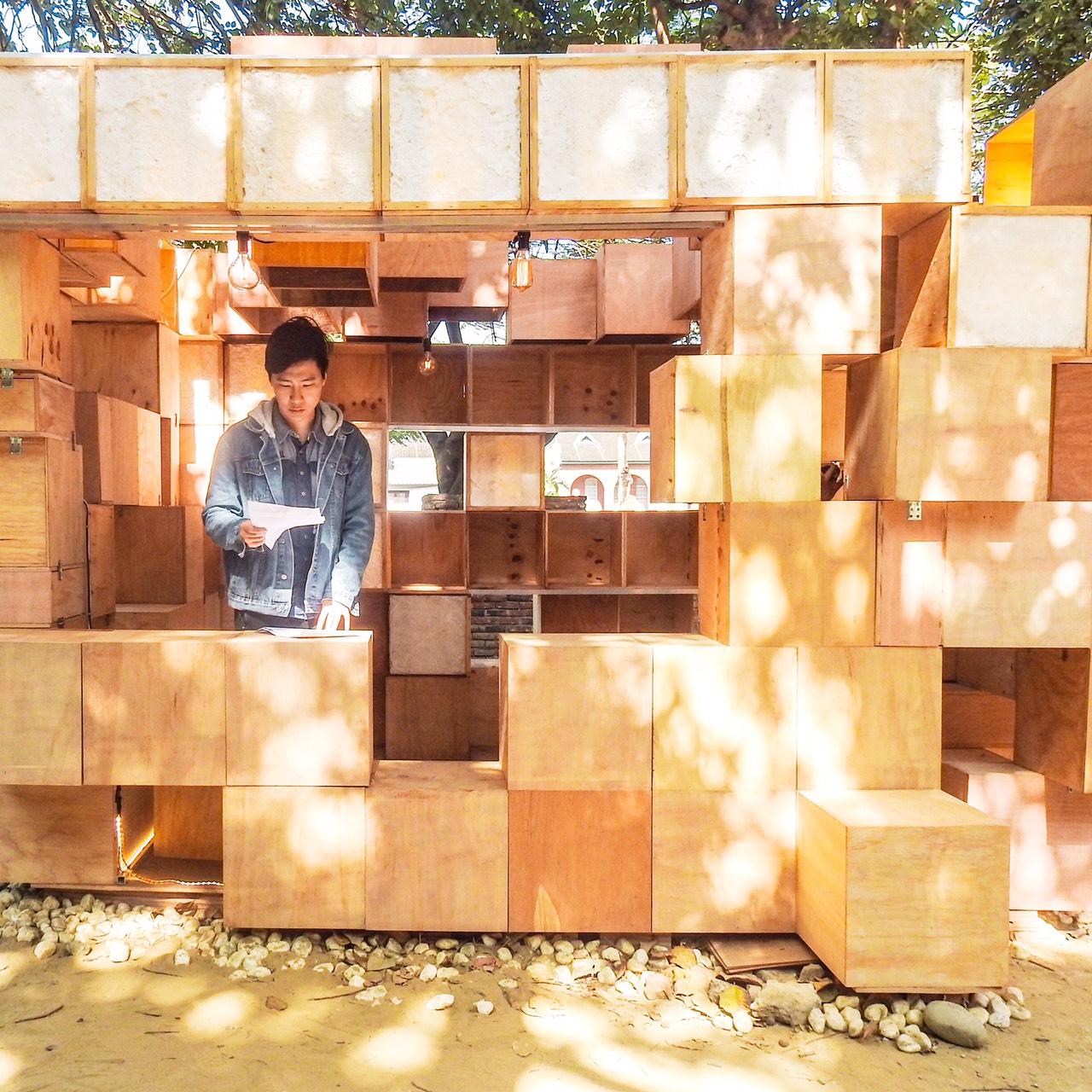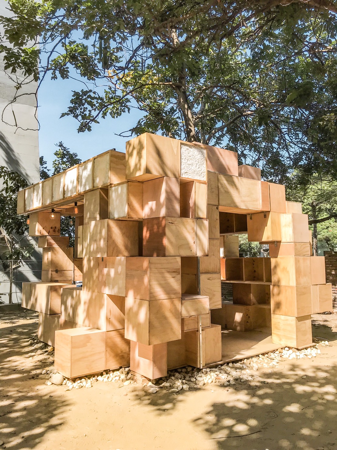 ‘Ba. Salt’ is a form based on notions and materials of vernacular origin combined with current techniques. The cubes, here as minimal units of composition, able to be combined in different positions, and can incorporate in a different way salt and basalt panels. This pavilion creates changing atmospheres, giving the project a certain vivid character. We are interested in seeing the light capacities that can arise from the different configurations of the cubes, but also from the reflective and projective capacities -about light- of the salt and basalt panels. We believe that all factors collaborate in generating enhanced effects of lights and shadows, making this a fundamental theme of this pavilion.